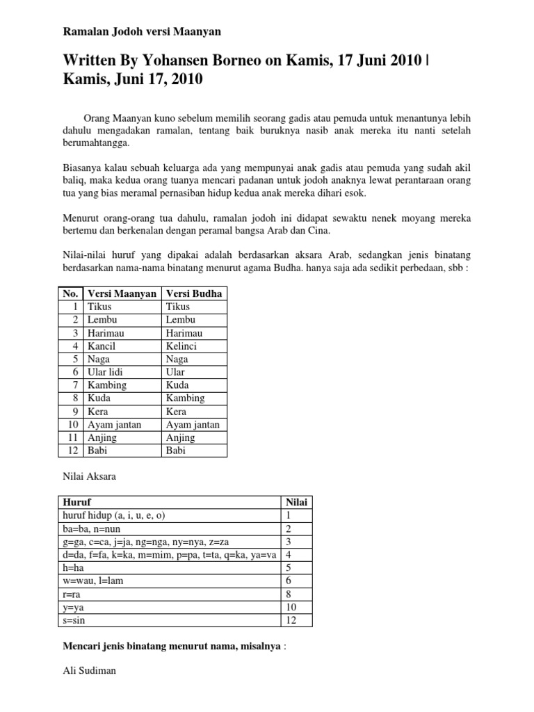 Ramalan Jodoh Versi Maanyan Docx