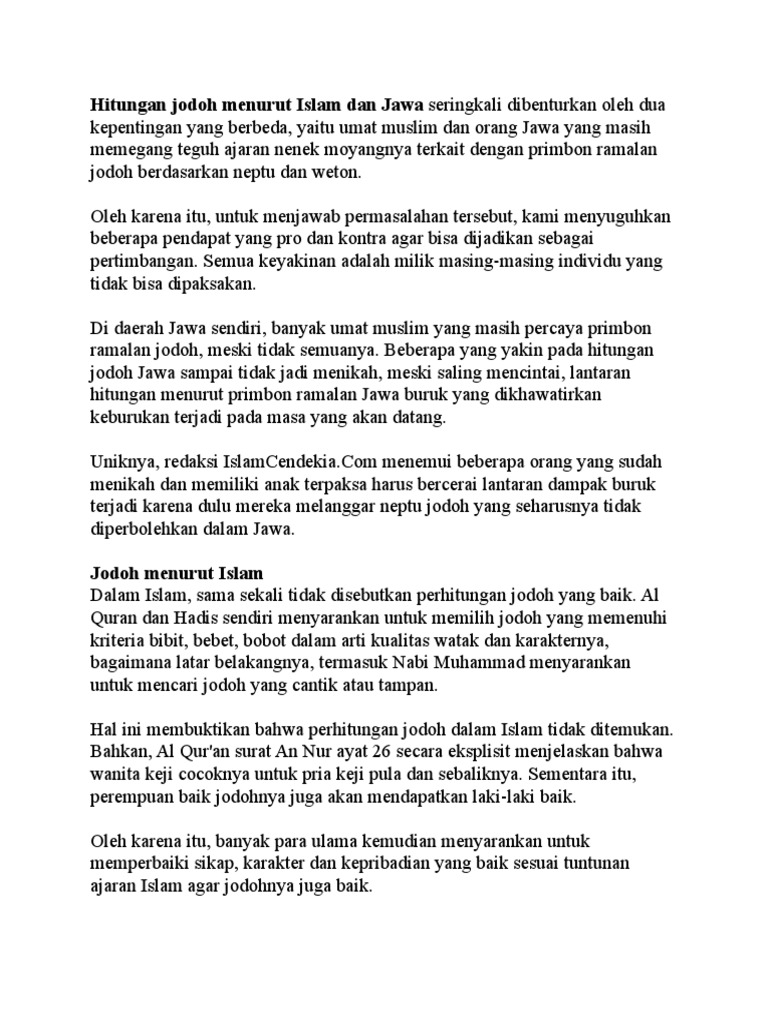 Hitungan Jodoh Menurut Islam Dan Jawaseringkali Dibenturkan Oleh Dua Kepentingan Yang Berbeda